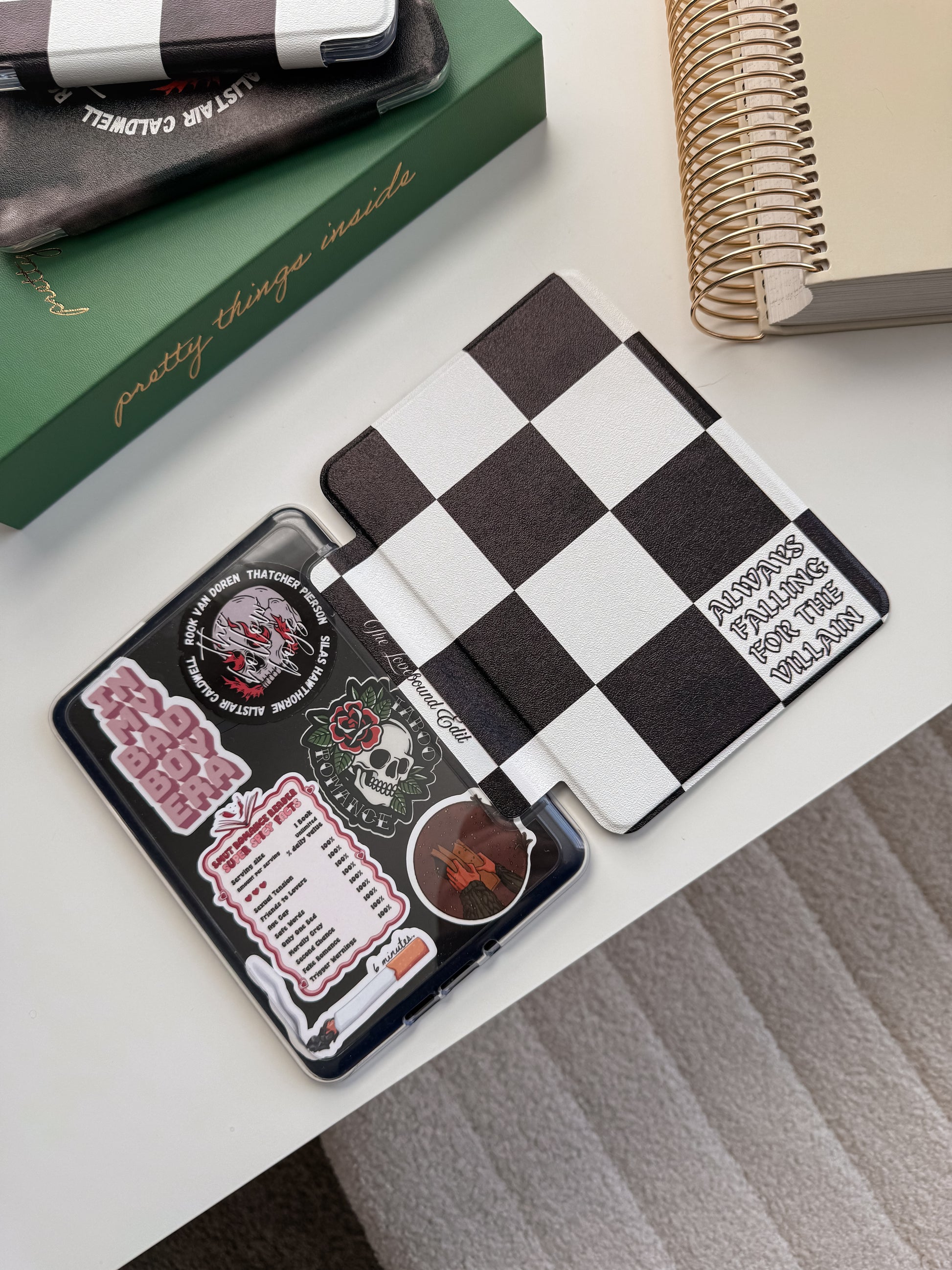 Protect your Kindle with this Checkered Villain Kindle Case. The cute design adds style while the clear back showcases your cute stickers. Easily secure it with a magnetic flap which also allows you to lock and unlock your kindle. Keep your Kindle safe and stylish with this must-have case!